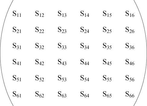 The compliances and stiffnesses are written as an array; for example for Sij