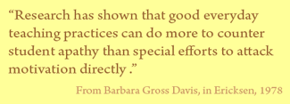 “Research has shown that good everyday teaching practices can do more to counter student apathy than special efforts to attack motivation directly .”