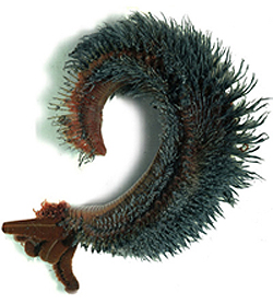 Created by Sarah Bordenstein, Marine Biological LaboratoryIn 1997, nearly 21 years after the discovery of the first hydrothermal vent system, marine biologist Craig Cary and colleagues identified the most heat-tolerant animal on Earth—Alvinella pompejana, the Pompeii worm. Pompeii worms were initially discovered by French researchers in the early 1980's and are described as deep-sea polychaetes that reside in tubes near hydrothermal vents along the seafloor. They can reach up to 5 inches in length and are pale gray with red tentacle-like gills on their heads. Perhaps most fascinating, is that their tail end is often resting in temperatures as high as 176º F, while their feather-like head sticks out of the tubes into water that is a much cooler 72º F. Scientists are attempting to understand how Pompeii worms can withstand such extreme temperatures by studying the bacteria that form a "fleece-like" covering on their backs. Living in a symbiotic relationship, the worms secrete mucous from tiny glands on their backs to feed the bacteria, and in return they are protected by some degree of insulation. The bacteria have also been discovered to be chemolithotrophic, contributing to the ecology of the vent community.
