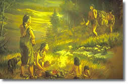 Native American family cooking. Details