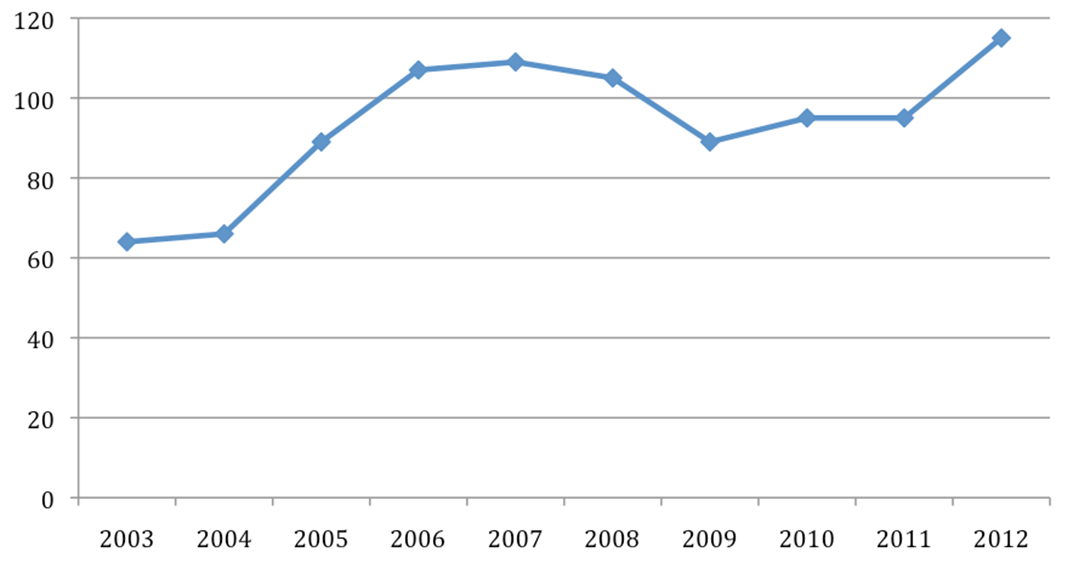 Approximately 115 majors participate in this degree with approximately 15-20 graduating each year. Enrollments in Geography have been growing steadily over the past few years. We believe this enrollment is due to a few factors. First, the Department emphasizes excellent teaching and mentoring; research by one our faculty indicates that one of the major factors influencing the decision to major in Geography is excellent teaching. Second, increased demand for college graduates with skills in geospatial technologies has attracted a number of students to our program. Third, whether our majors focus on geospatial technologies or another specialization within Geography, our graduates get jobs in their major field of study. Over the past three years, we have focused on communicating the value of a degree in Geography in our lower-level Geography courses as a way to attract more students to our major.