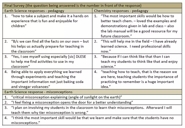 View Original Image at Full SizeSurvey results from Sandra Rutherford's pre-service teachers, what concepts they thought were important
