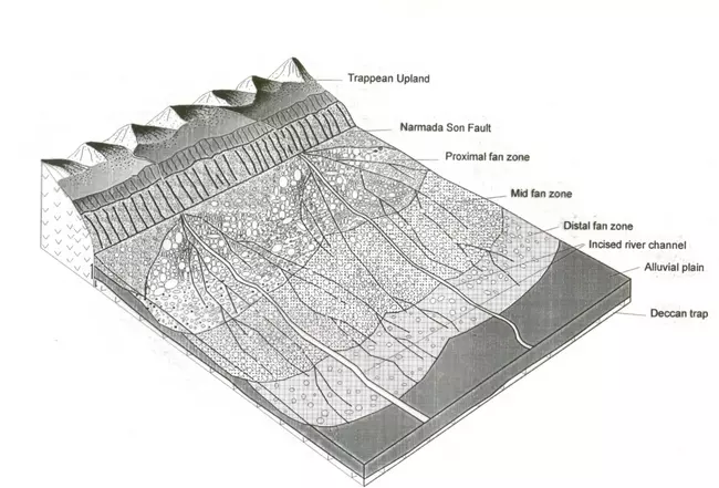 Fig. 4. A model showing the morphology and sedimentation pattern of the early Holocene alluvial fans (Bhandari et al., 2001).