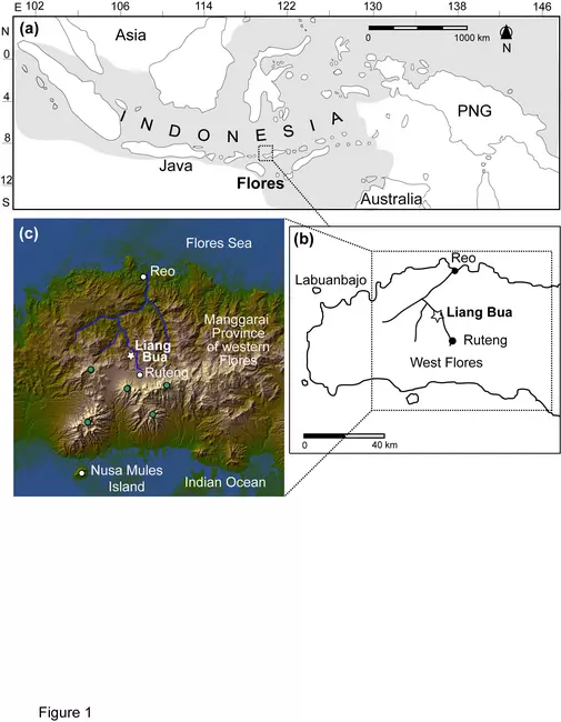 showing the location of Ruteng and Liang Bua (white star). (c) A LANDSAT