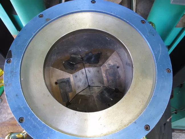 View Original Image at Full SizeFirst stage anvils in the Kennedy Walker split cylinder apparatus in the Mineral Physics Institute High Pressure Laboratory at Stony Brook University.