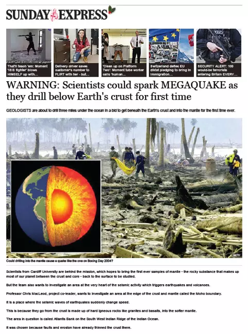 View Original Image at Full Size"Scientists could spark MEGAQUAKE" headline about ocean drilling
