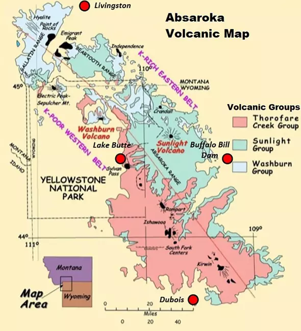 Map of the Eocene Absaroka Volcanic Province, modified from Chadwick, 1970.