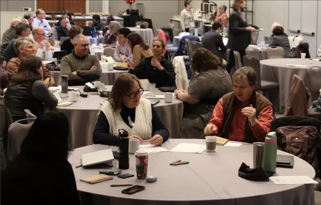 View Original Image at Full SizeConference meeting with people interacting at tables