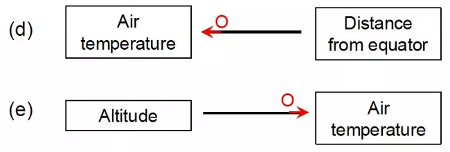 Two items from the warm-up activity for the "Causal Loop Diagramming" activity; answers are shown in red. This optional activity builds fluency in the graphic language of causal loop diagrams and challenges students to attend closely to the nature of the influence that one node exerts on the other.