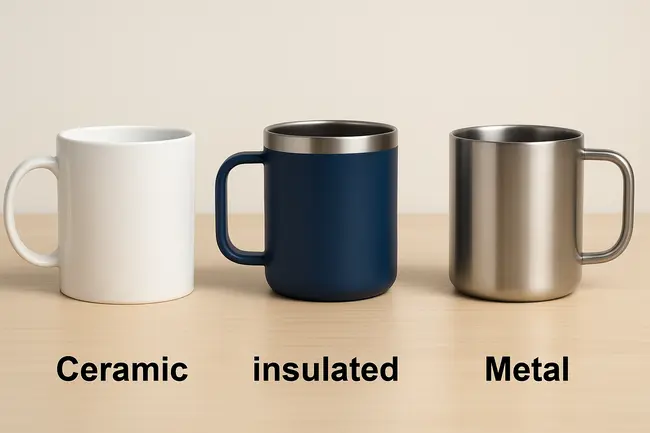 View Original Image at Full SizeAn illustration showing ceramic, metal, and insulated mugs to aid visualization. Helps connect computation to physical intuition and supports inclusive visual learning.