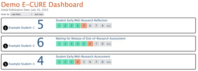 Screenshow showing E-CURE student progress