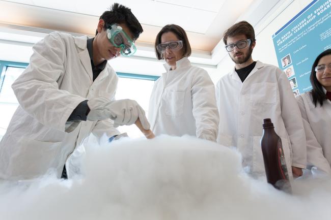 A photo of people working with something very cold.Originally uploaded in Pedagogy in Action.