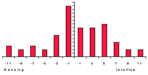 Learning style distribution of Early Career workshop participants, sensing vs. intuitive scale