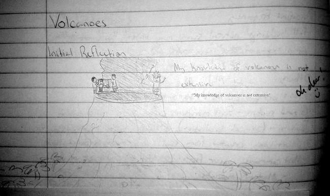 View Original Image at Full SizeInitial student reflection about volcanoes, "My knowledge of volcanoes is not extensive."