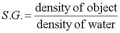 specific gravity equals density of object divided by density of water Originally uploaded in Math You Need.