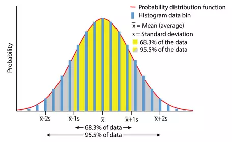 That is ... most of the data falls within 5.7°F of the mean value of 15.7°F.