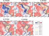 Figure 3 from 'Reconstructing Farallon Plate Subduction Beneath North America Back to the Late Cretaceous' by Liu et al, published in Science [2008, 322(5903), 934]. This figure shows the map view evolution of the Farallon subduction from the Late Cretaceous to the Early Tertiary.