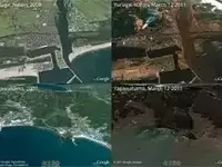 This web page from Google offers high-resolution imagery, courtesy of their partners at GeoEye, which can be accessed by download a KML file provided on the site and explored in Google Earth. Imagery can also be viewed with Google Maps, or via a link to a Picasa album of before-and-after shots.