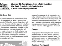 The purpose of this investigation is to facilitate understanding of the basics of cloud formation involving the changing state of water. This activity should enhance the understanding of the change of state concept, which is important in the study of meteorology.