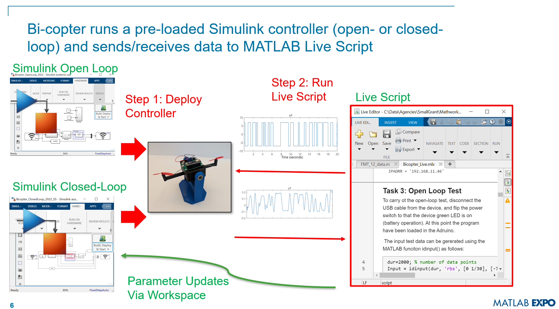 Open and closed-loop tests are initiated from the MATLAb LiveScript, after deploying the open- and closed-loop simulink models in the Bi-Copter's Arduino controller.