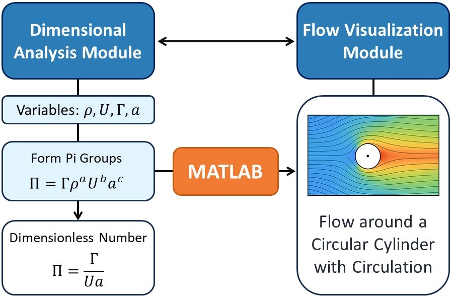 In this MATLAB-based activity, students develop two general computational modules, one for automated dimensional analysis using the Buckingham π theorem, and another for streamline and pathline visualization for arbitrary velocity fields. These tools are designed to be reusable across a range of physical and engineering systems. Once validated on classical benchmark problems, the modules are applied to a capstone problem: the potential flow around a circular cylinder with circulation. Through this workflow, students connect the abstract principles of scaling and similarity to the tangible visualization of flow dynamics, building an integrated understanding of computational, analytical, and physical reasoning.